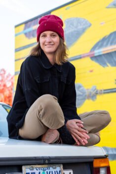 anika-sitting-car-yellow-wall